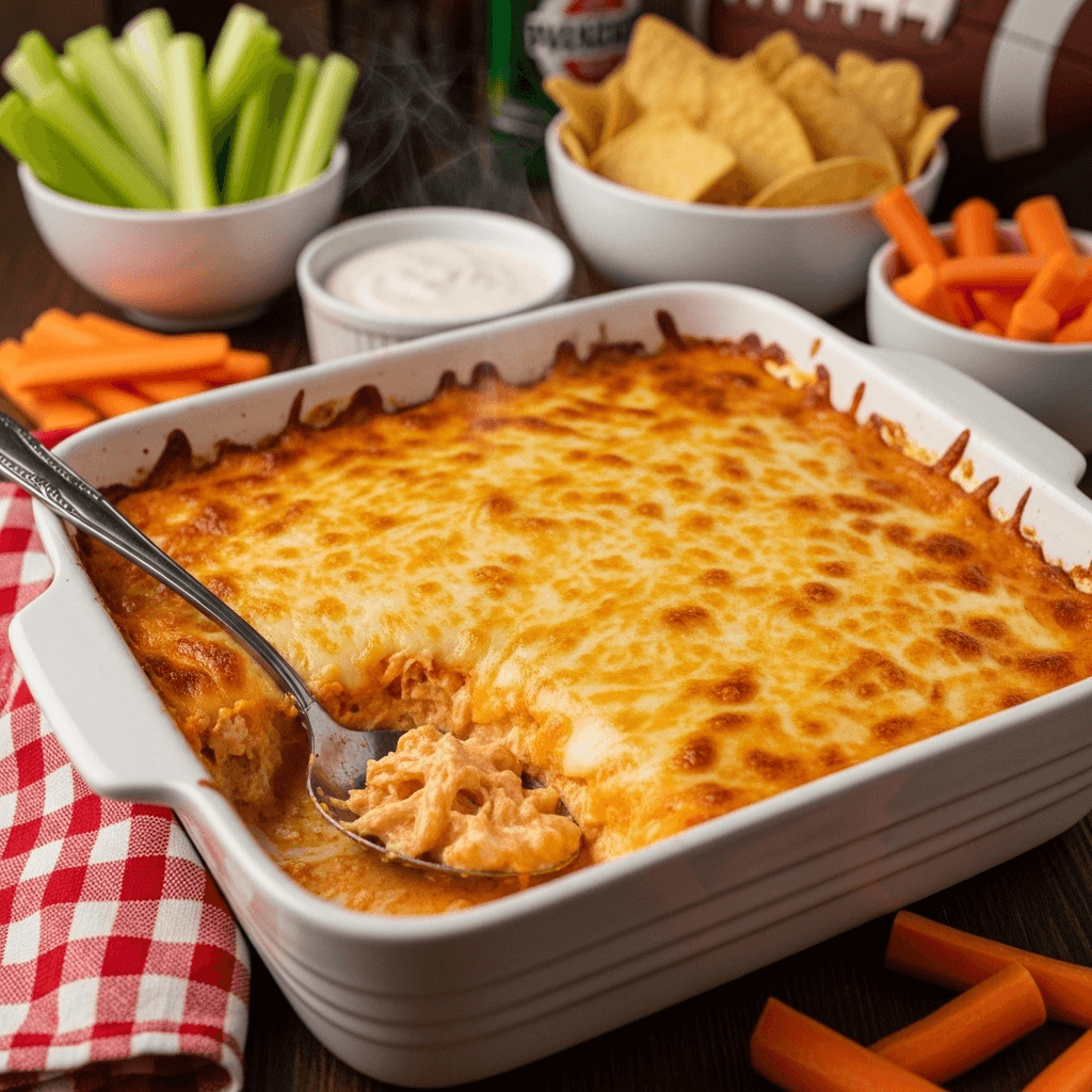 - Buffalo chicken wing dip as the centerpiece