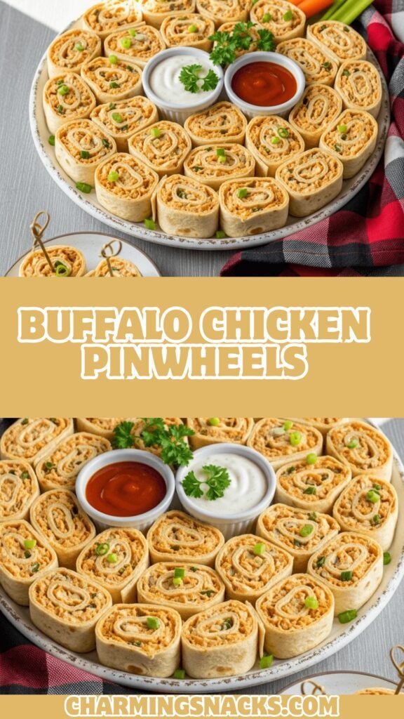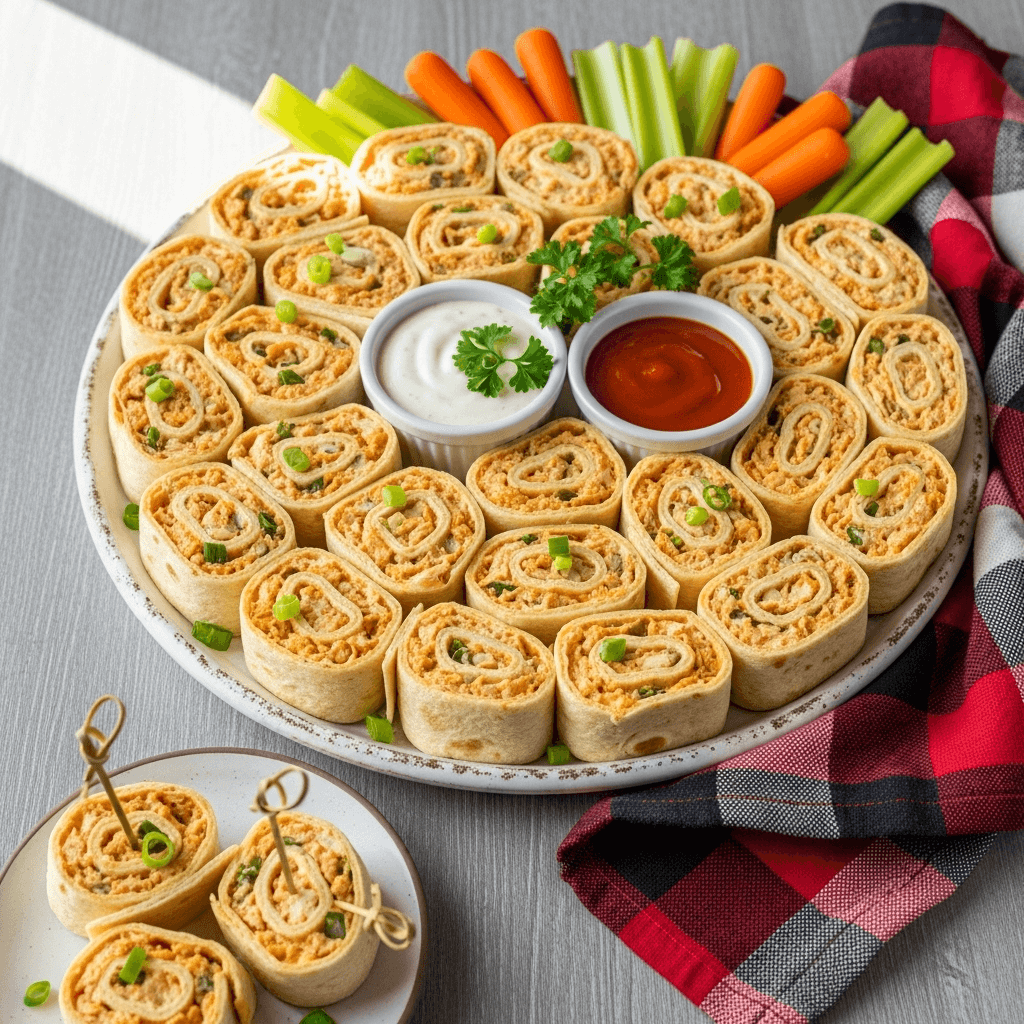 Visual Appeal: For the most Instagram-worthy presentation, arrange your pinwheels in a circular pattern on a round platter, spiraling from the center outward. Add fresh herbs, celery sticks, and small bowls of extra buffalo sauce and ranch for dipping in the center.