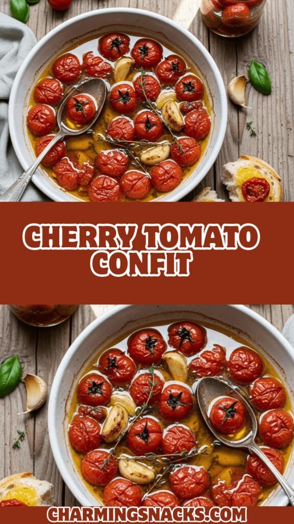 Cherry Tomato Confit is a French-inspired technique where cherry tomatoes are slowly roasted in olive oil with garlic and fresh herbs until they become jammy, intensely sweet, and bursting with concentrated flavor. The result is a versatile condiment that elevates everything it touches—from pasta and crusty bread to grilled meats and grain bowls. Unlike traditional confit which uses animal fat, this version relies on high-quality olive oil to create tender, caramelized tomatoes that practically melt in your mouth.