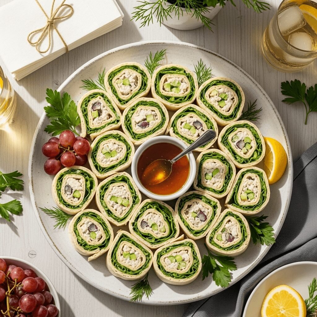 The specific combination of chicken salad in a tortilla pinwheel likely emerged in the 1980s and 90s when tortillas became more mainstream in American kitchens beyond Mexican cuisine. Home cooks discovered that flour tortillas were the perfect vehicle for creating neat, easy-to-slice pinwheels that didn’t fall apart like traditional bread rolls sometimes did. The tortilla’s flexibility and neutral flavor made it ideal for holding creamy fillings without getting soggy.