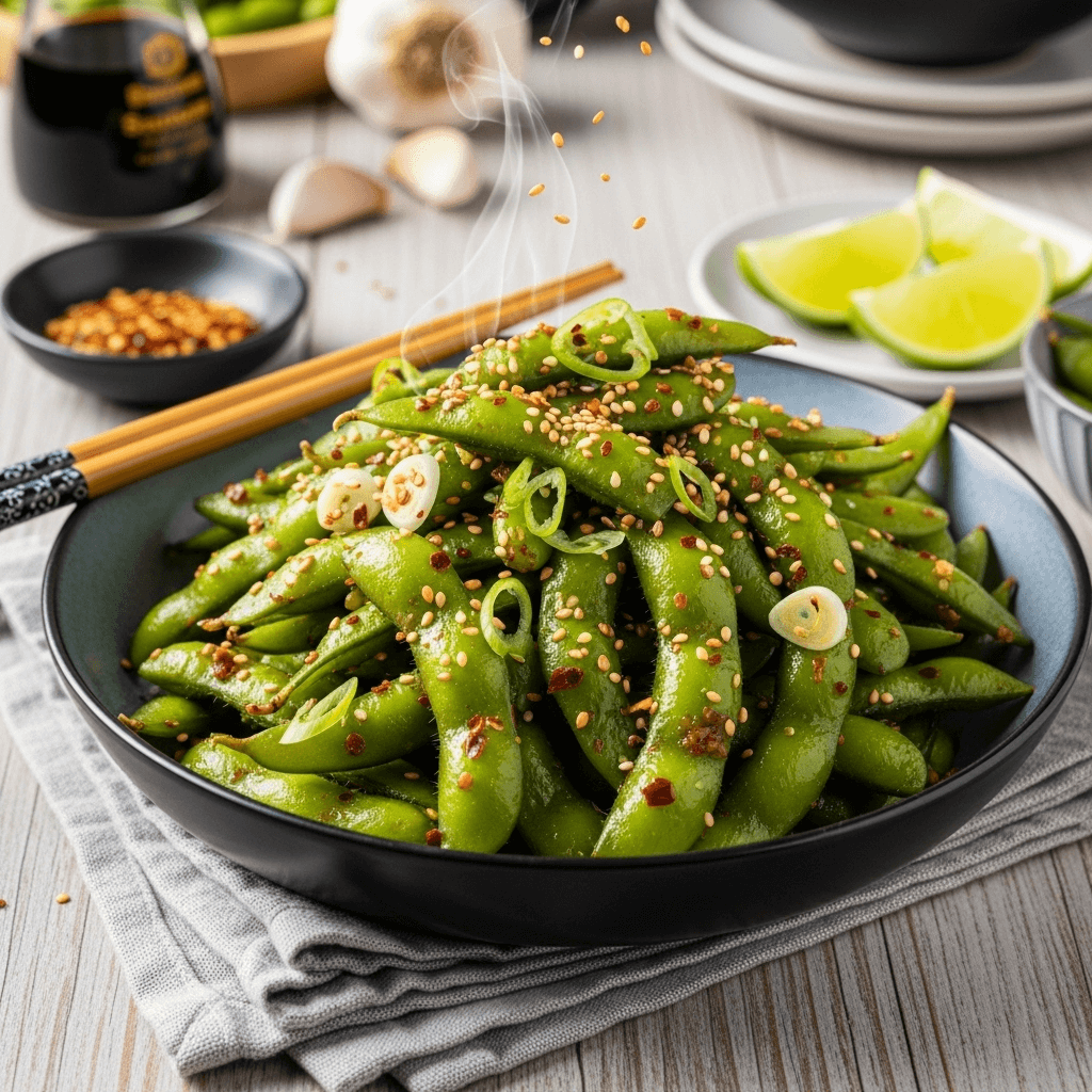 Presentation Tips: Serve in a wide, shallow bowl or on a large plate to showcase the vibrant green color. Garnish generously with sesame seeds and sliced green onions. Provide a small empty bowl for discarded pods and napkins—eating edamame is a hands-on experience! Lime wedges on the side add fresh brightness and look beautiful.