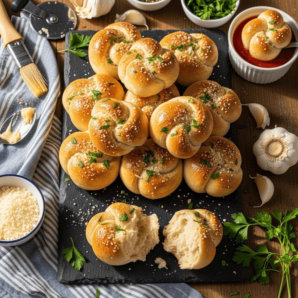 Herb-Loaded Garlic Knots: Add fresh rosemary, basil, or oregano to the garlic butter along with the parsley. Fresh herbs create incredible aromatic complexity.