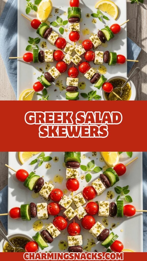I’d absolutely love to hear how your Greek salad skewers turn out! Did you add any creative variations? What occasion are you making them for? Drop a comment below and share your experience. And if this recipe brings some Mediterranean sunshine to your kitchen, please share it with your friends and pin it to your favorite Pinterest board so you can make these colorful skewers again and again. Here’s to easy, fresh, and absolutely delicious entertaining!