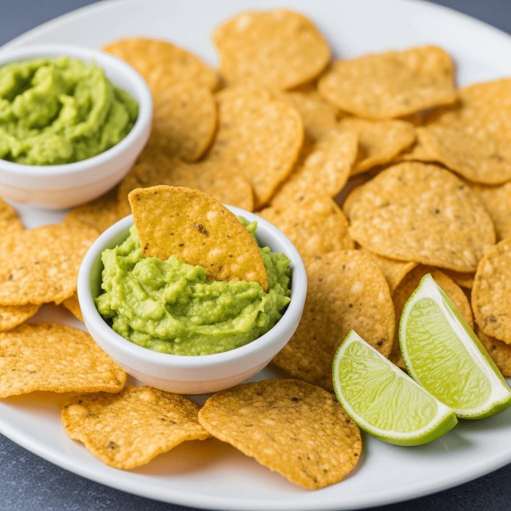 Classic Dip Trio: Arrange chips on a platter with bowls of guacamole, fresh salsa, and sour cream for a traditional chip-and-dip experience. Add lime wedges for squeezing over the chips.