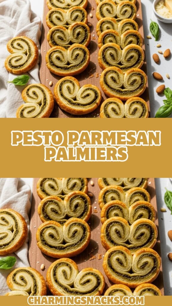 Can I make sweet palmiers using this same technique? Yes! The rolling and shaping technique is identical. Simply omit the pesto and Parmesan, and instead sprinkle the pastry generously with cinnamon sugar (¼ cup sugar mixed with 1 tablespoon cinnamon) before rolling. You can also add chopped nuts, chocolate chips, or jam. Bake the same way for classic sweet palmiers.