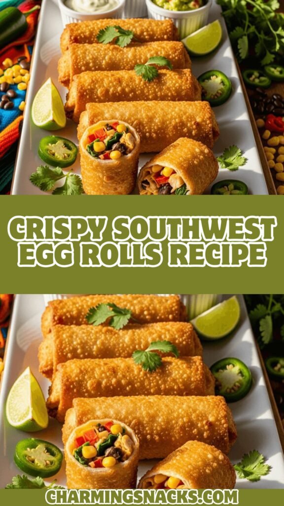 Southwest egg rolls are crispy, golden-fried or baked tortilla wraps filled with a flavorful mixture of chicken, black beans, corn, bell peppers, and melted cheese seasoned with bold Tex-Mex spices, creating the ultimate appetizer that tastes just like the famous restaurant version but made right in your own kitchen. This easy Southwest egg rolls recipe brings all those beloved Southwestern flavors—smoky cumin, zesty lime, creamy avocado ranch dipping sauce—together in a perfectly portable, party-ready format that’s ideal for game day gatherings, family dinners, potlucks, or anytime you’re craving restaurant-quality appetizers at home. Whether you’re feeding a hungry crowd or looking for a fun weeknight dinner that everyone will devour, these Southwest chicken egg rolls deliver that irresistible combination of crispy exterior and flavorful, hearty filling that keeps people coming back for more.