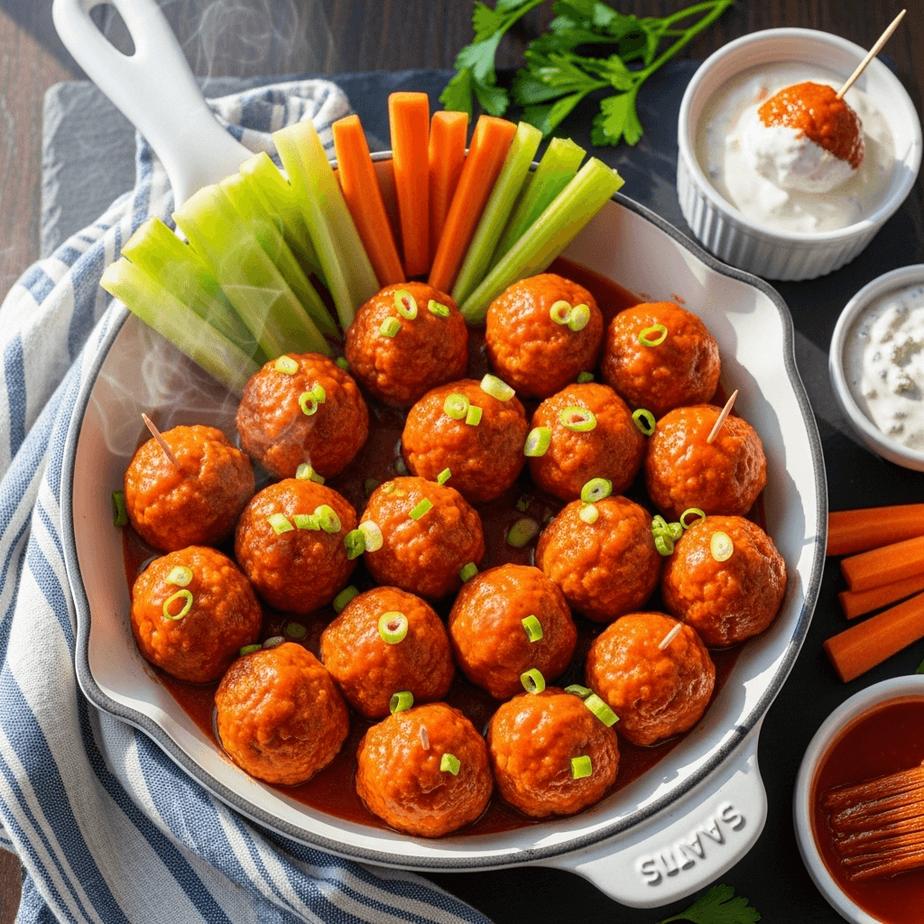 Celery – Traditional accompaniment that adds fresh crunch. Serve celery sticks alongside meatballs for that authentic buffalo experience and textural contrast.