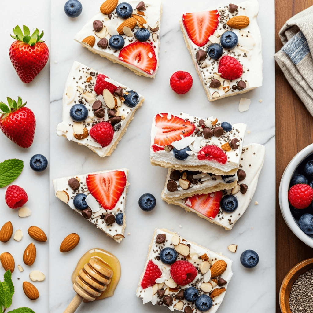 A: Yes! Mix 1-2 scoops of your favorite protein powder into the yogurt base before spreading. This increases the protein content even further, making it an excellent post-workout snack. Vanilla or chocolate protein powder works best. Keep in mind that protein powder may slightly alter the texture and can make the bark a bit more dense, so you might need to add a splash of milk to maintain spreadability.